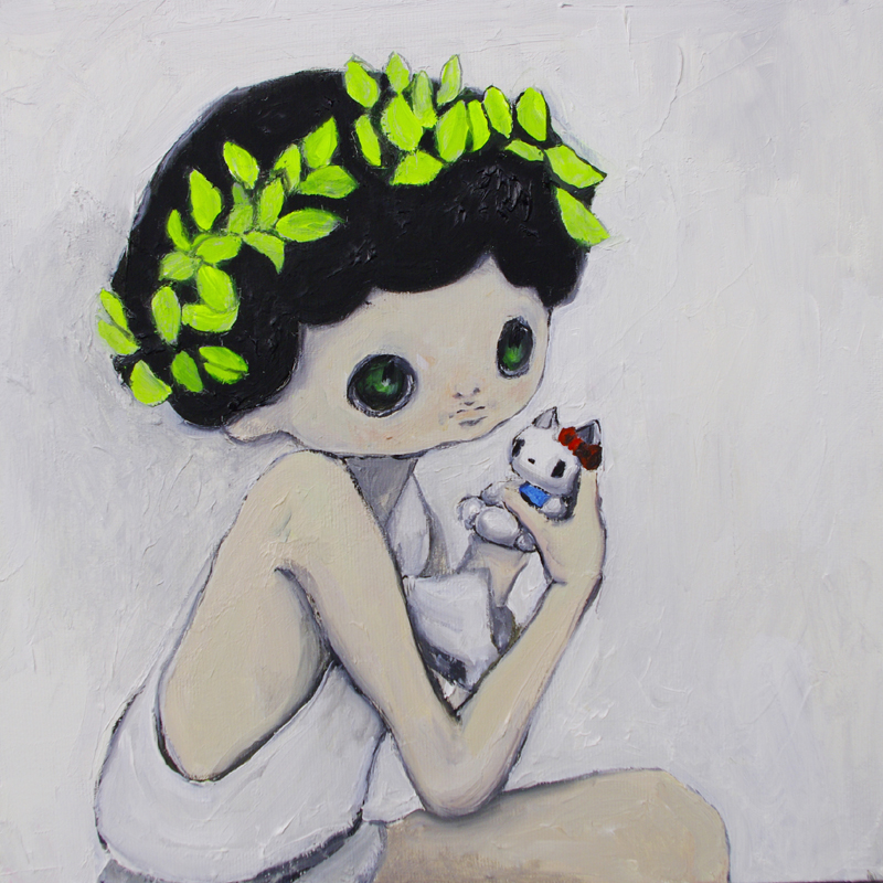 Caravaggio, young sick Bacchus with kitty /2012oil on the canvas : 30 x 30 cm