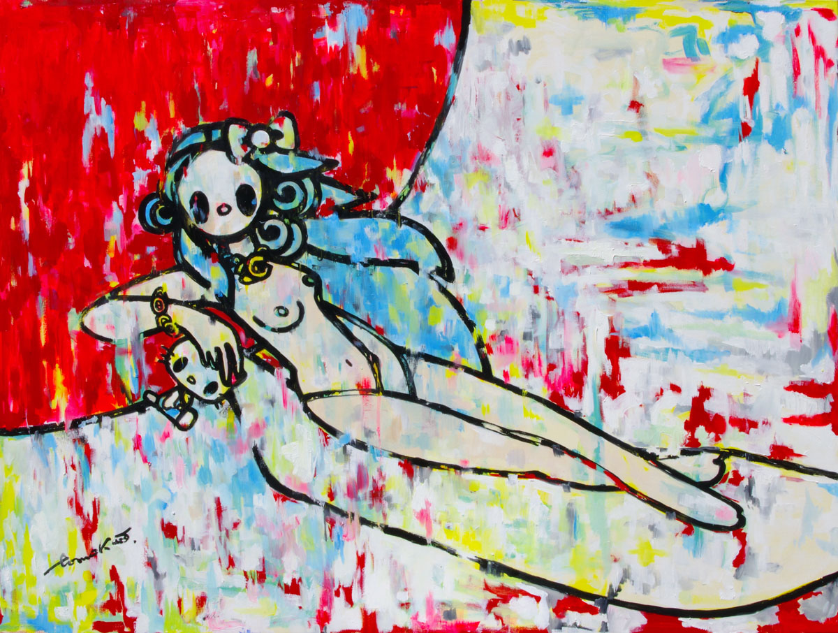 Venus after tiziano with kitty chanel-red curtain |